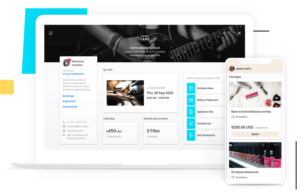Make it possible for repeat customers to pay with a single click with vcita online payment processing. Customers may see their outstanding bills and make payments using the platform.